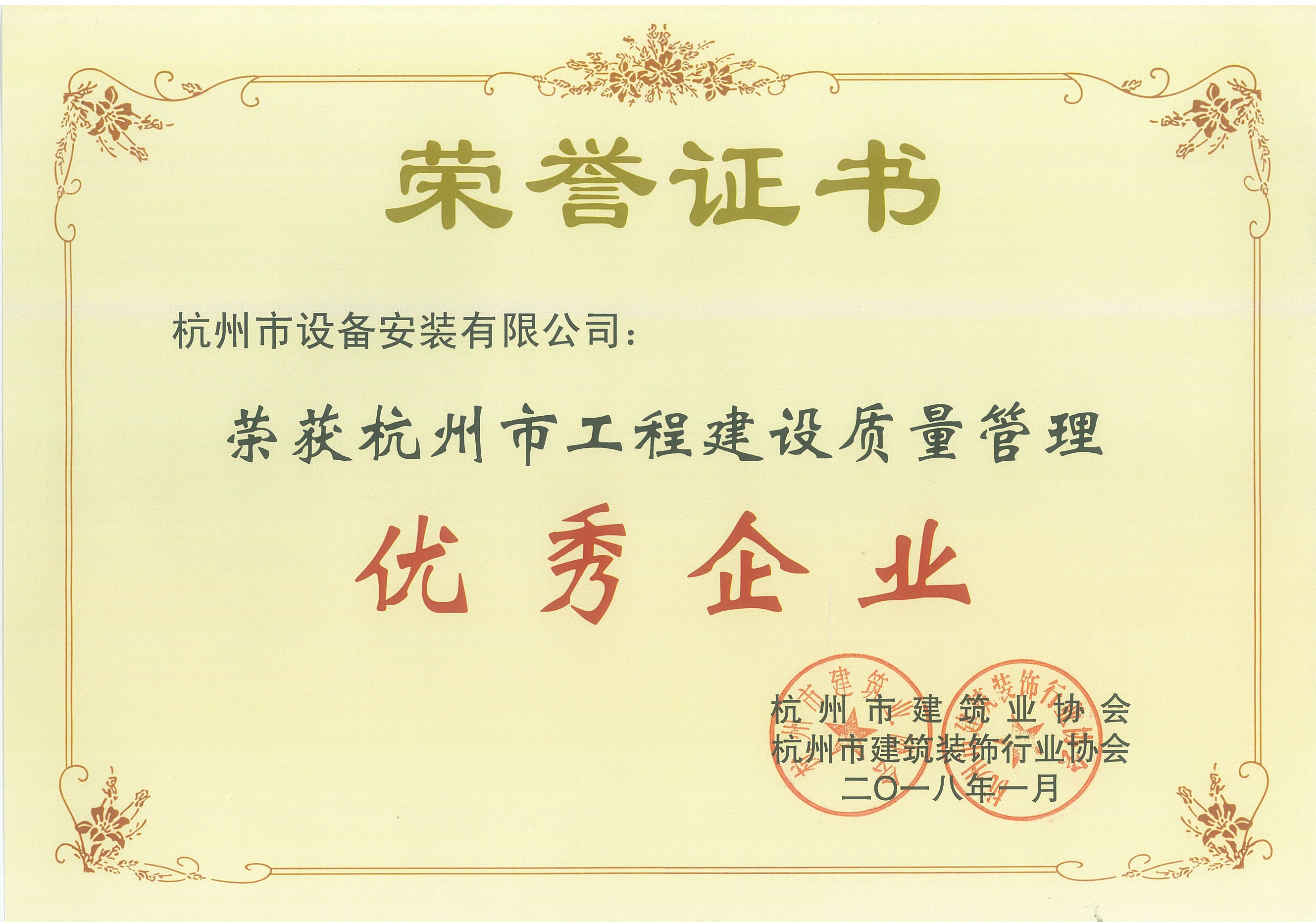 2018年杭州市工程建設(shè)質(zhì)量管理優(yōu)秀企業(yè)