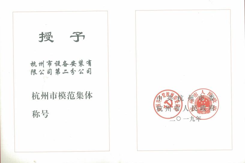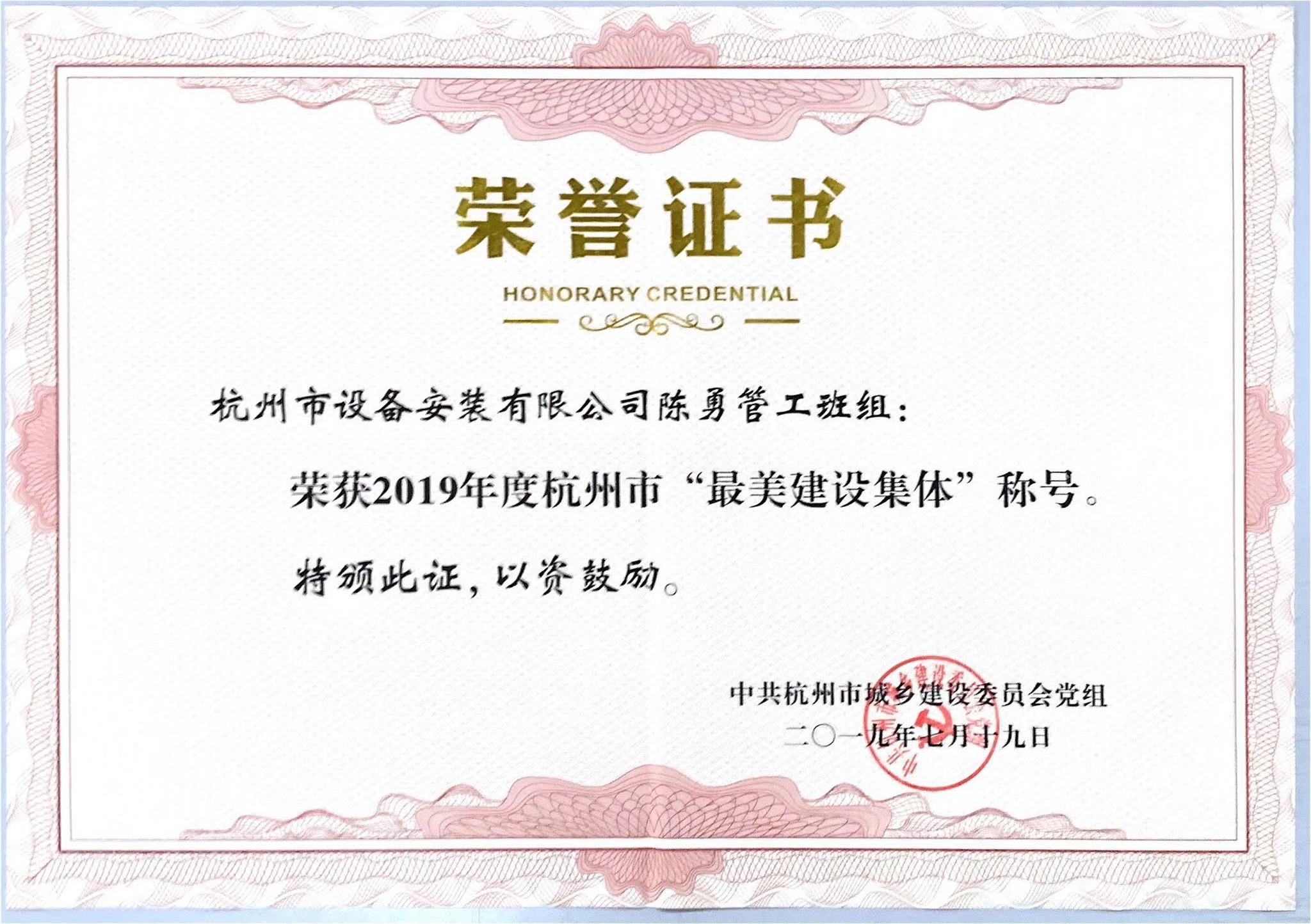 2019年度杭州市最美建設(shè)集體陳勇管工班組