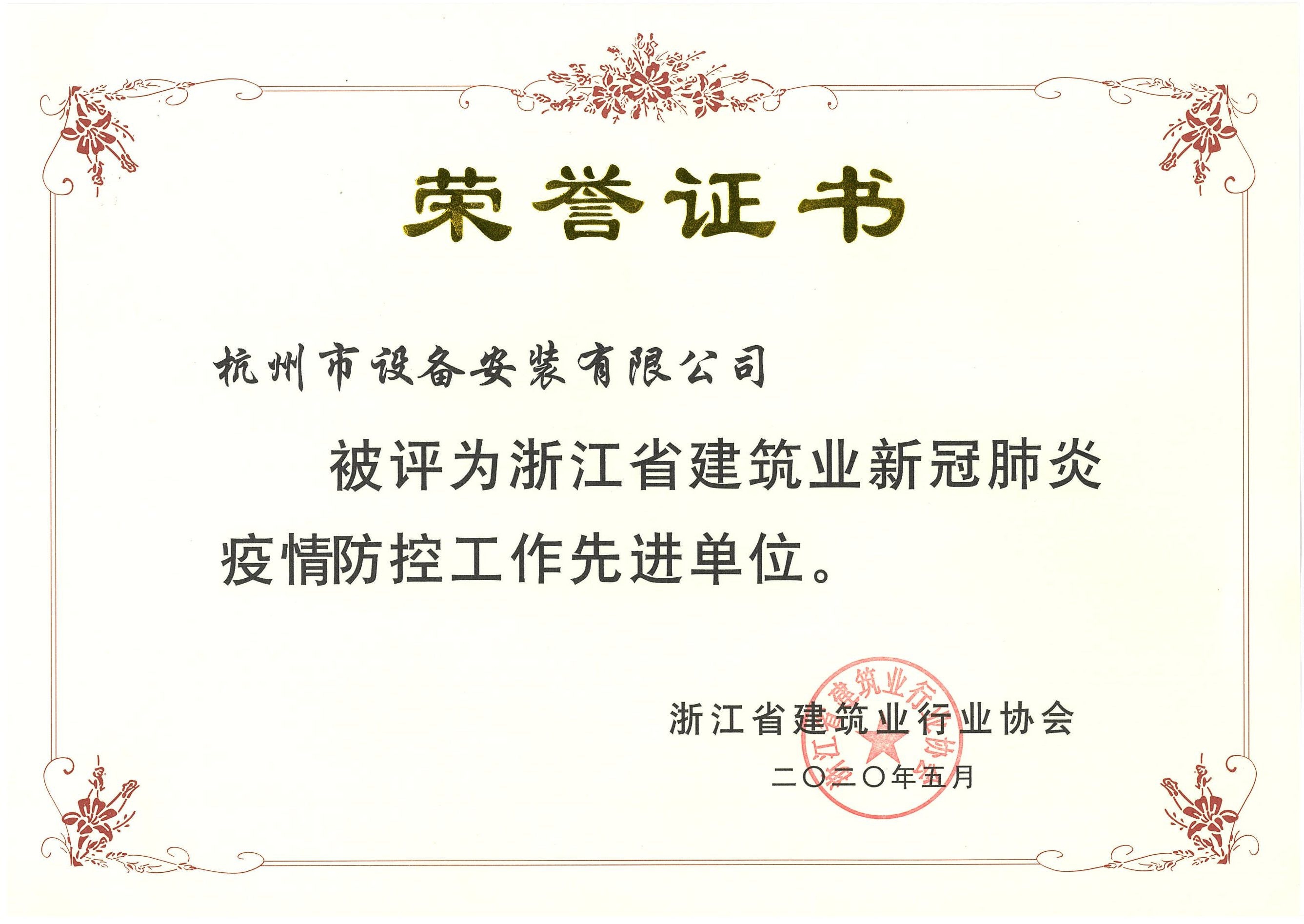 2020年浙江省建筑業(yè)新冠肺炎疫情防控工作先進單位