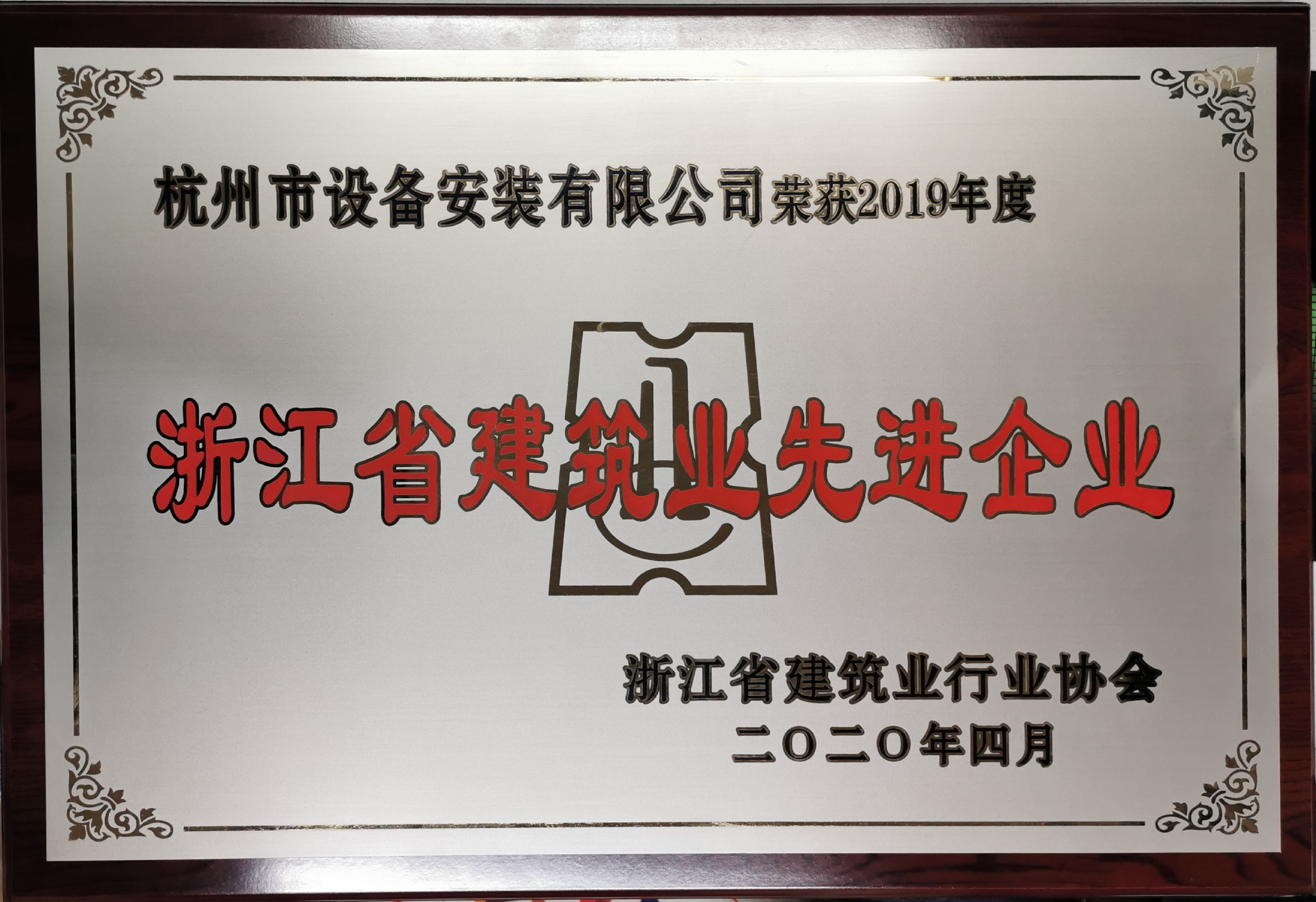 2019年度浙江省建筑業(yè)先進企業(yè)